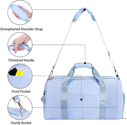 Gym Duffle Bag Dry Wet Separated Gym Bag Sport Duffle Bag Training Handbag Yoga Bag with Extra Drawstring Backpack for Man and Women (Blue-Upgrade) Large